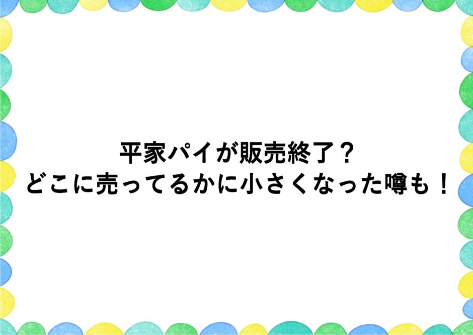 平家パイが販売終了?