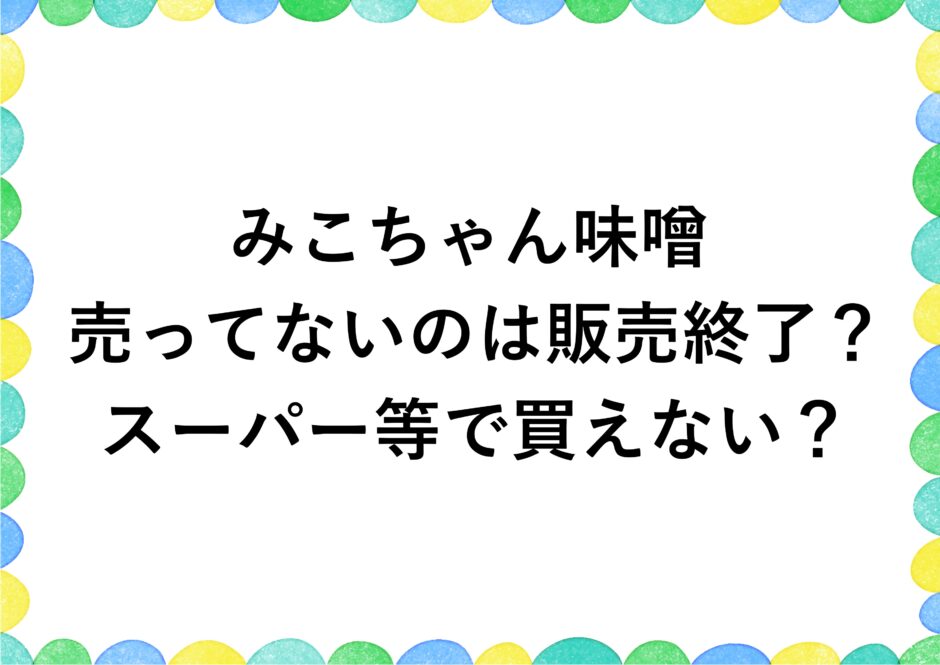 「みこちゃん味噌ってもう売ってないの?」と気になっている方もいるかもしれませんね。