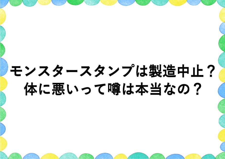 モンスタースタンプに「体に悪いのでは?」という声を聞いたことがある方もいるかもしれません。