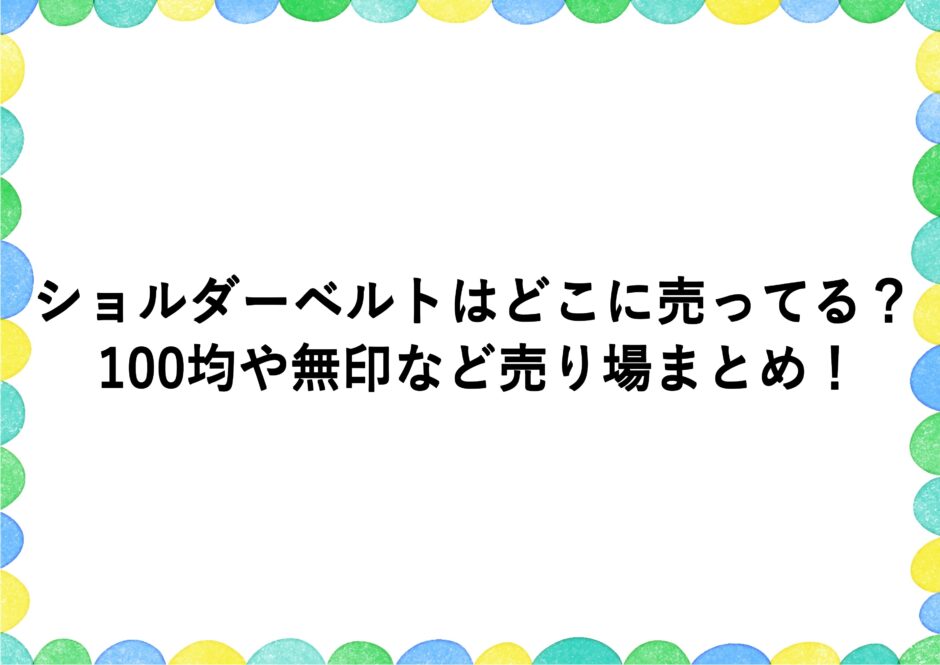 なんてアナタのために、100均や無印良品など、ショルダーベルトの販売店舗をまとめました。